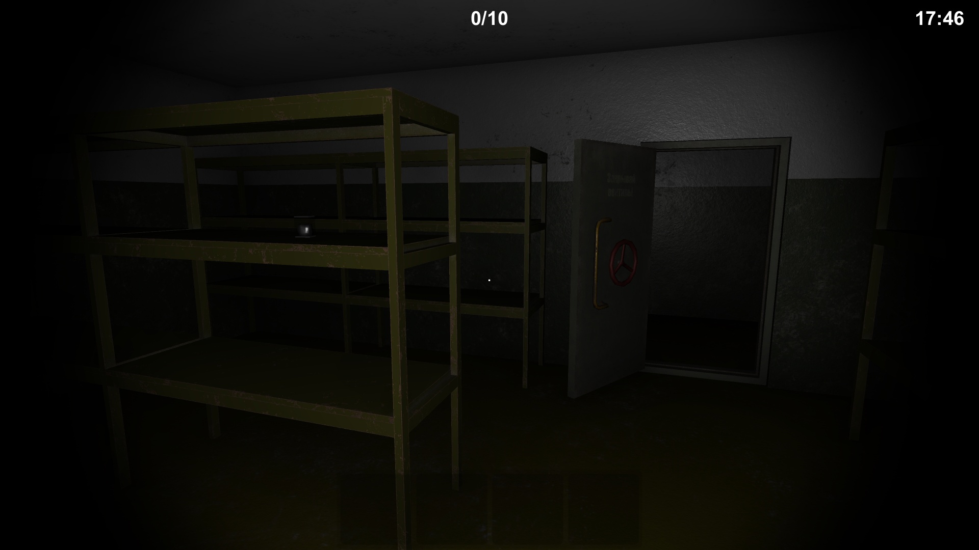 Among the stalkers there was a story about those buried in a secret bunker ten artifacts and a collector willing to pay for these artifacts a large sum of money, and finally you succeeded find this bunker, but as soon as you entered it, it turned out that someone had stolen all the spare batteries, and the flashlight’s charge would not last long, the timer will show approximately how much charge is left